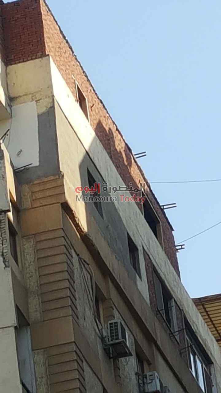 بالصور.. شكوي سكان عمارة بالمنصورة من تصدع العقار بسبب بناء أدوار مخالفة وسط تجاهل المسئولين