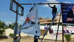 شنت منال عطية الغندور رئيس حى غرب المنصورة ، حملة مكبرة لإزالة الإعلانات المخالفة والغير مرخصة لعودة الإنضباط إلى الشارع .
