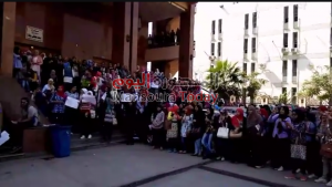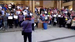 نظم العشرات من طلاب الفرقة الخامسة النظام القديم بكلية الطب جامعة المنصورة ، اليوم، وقفة احتجاجية ، اعتراضا على صعوبة امتحان الباطنة .