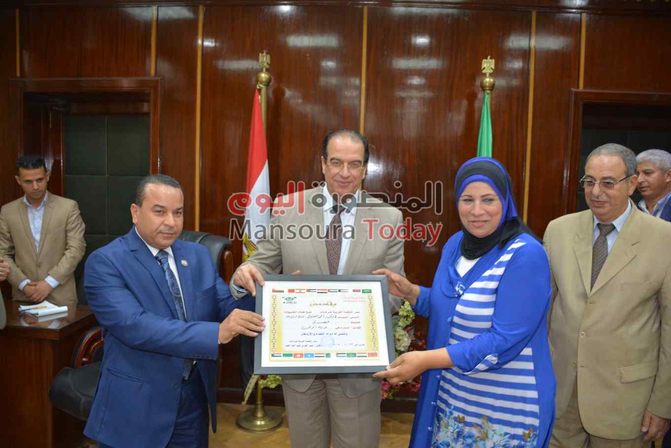 رئيس منظمة الشعوب يمنح دكتوراة فخرية من المنظمة لمحافظ الدقهلية لإنجازاته في تطوير المحافظة