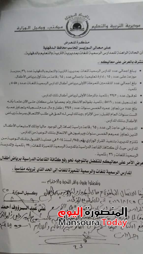 عقد النائب نبيل الجمل والنائب أحمد الشرقاوى نواب مدينة المنصورة بمحافظة الدقهلية مع المحاسب حسام الدين إمام محافظ الدقهلية فى إطار إحتواء أزمة الكثافة العددية لتلاميذ التعليم إجتماع مطول لأكثر من ثلاث ساعات وتم الإتفاق على إنهاء هذه الازمة بمذكرة تضمنت الأزمة و كيفية الخروج منها وتوجه النائبان بمذكرة للمحافظ أثناء وجوده بمدينة جمصة لرفع كثافة القاعات الدراسية برياض أطفال المدارس الرسمية والرسمية المتميزة للغات .