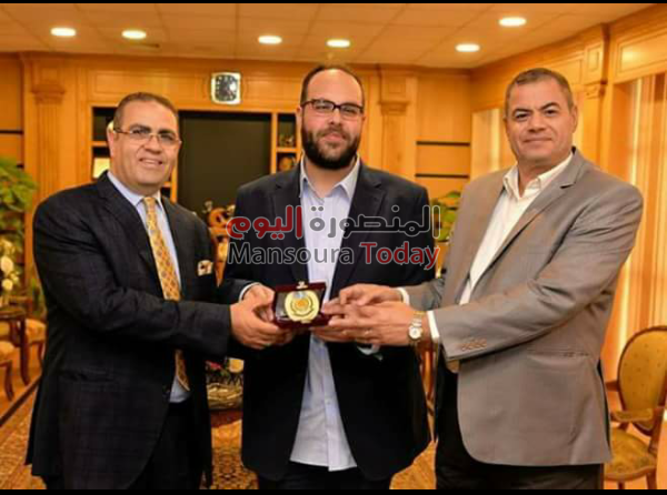 كرم ا/د محمد القناري رئيس جامعة المنصورة استاذ مساعد/مينا مشالي بقسم عمارة كلية الهندسة بجامعة المنصورة.