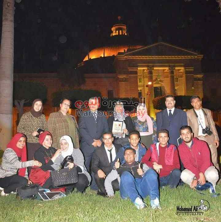 تم تقديم درع التكريم لوفد قسم الاعلام بكلية التربية النوعية جامعة المنصورة يتسلمه الدكتورة إيمان خضر رئيس قسم الاعلام وذلك للمشاركه الفعالة المتميزة من الطلاب بالمسابقات الاعلامية المختلفة بحضور الدكتور حازم البنا , الدكتور ابراهيم ابو المجد ، الدكتور أحمد حسين , الدكتورة أمال سعد , الدكتورة أسماء عبد المنعم, الدكتورة أحمد الهلالى ومشاركه الطلاب فى فعاليات الدورة السادسة لمونديال القاهرة للأعمال الفنية والإعلام .