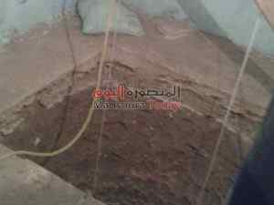 أثناء الحفر داخل منزل المدعو “جمال.ر”، المكون من 3 طوابق، وتبين وجود حفرة قطرها متر وعمقها 5 أمتار تقريبا بصالة الطابق الأرضي وعثروا على بعض أدوات الحفر.