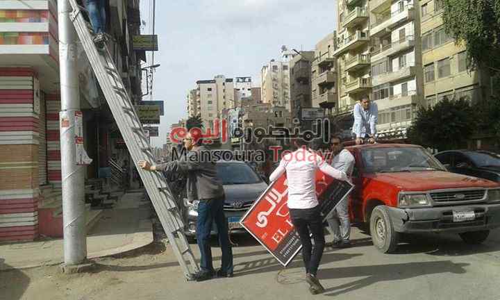 شنت منال عطية الغندور رئيس حى غرب المنصورة حملة ، إشغالات بشارع عبد السلام عارف والترعة وكلية الأداب والمشاية بشأن عودة الإنضباط إلى الشارع .