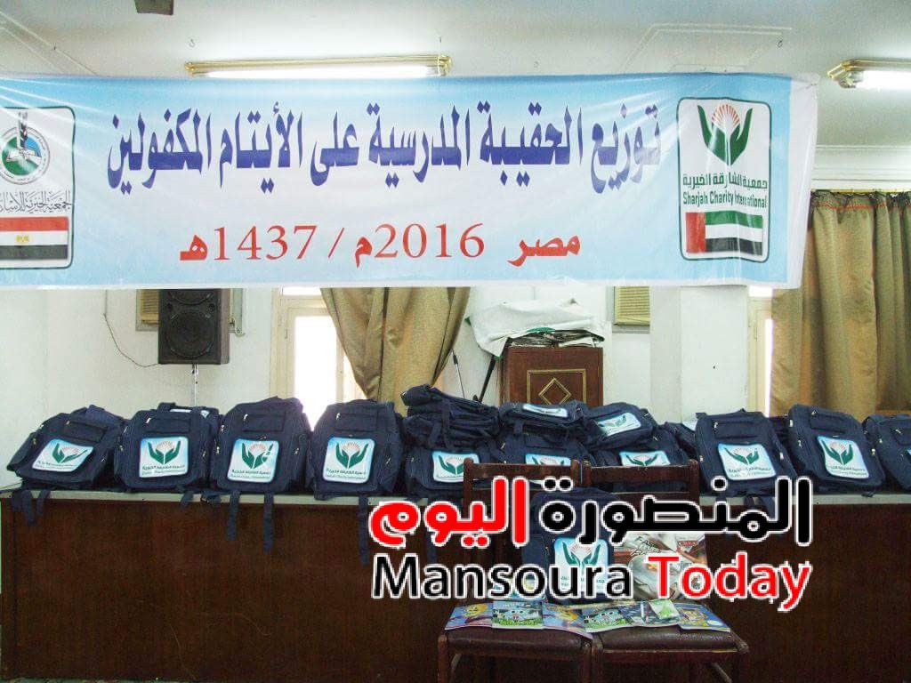 الجمعيه الخيريه بمنيه النصر توزع حقائب مدرسيه علي الايتام