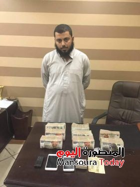 وتمكنت حملة أمنية برئاسة العقيد السيد خشبه مفتش مباحث مركز المنصورة والرائد رامى الطنطاوى رئيس مباحث المركز ومعاونة النقيب أحمد نجاح والنقيب أحمد عوض والنقيب محمد عبد الرحمن من ضبطه أثناء استقلاله السيارة رقم د و ص 8754 ملاكى وبحوزته 491375 جنيه و200 دولار أمريكي وعدد 3 هواتف محموله .