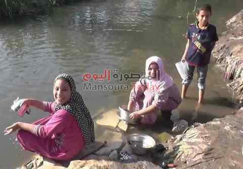 بالصور.. كفر الحطبة بشربين ” عطشانة” وأحد الأهالي “احنا بنجيب المياه من الترعة ونغليها ونشربها”