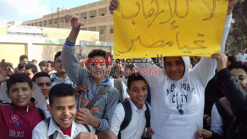 بالصور.. صلاة غائب ومسيرة حاشدة من طلاب مدرسة الشهيد عصام الحسينى بميت تمامة بالدقهلية