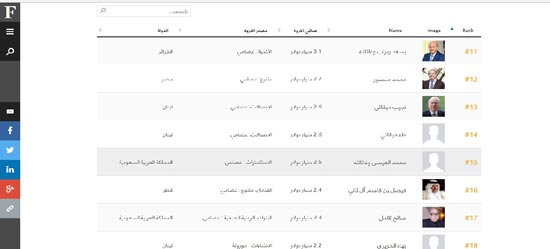 ويذكر ان فوربس قد أعلنت الدولي محمد صلاح لاعب نادي ليفربول الإنجليزي صدارة قائمةأفضل 10 لاعبين عرب في العالم لعام 2017 .