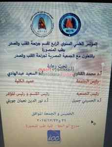 تنظم كلية الطب – جامعة المنصورة – المؤتمر السنوي الرابع لجراحة القلب والصدر يومى الخميس والجمعة الموافق 21 ’22 /12/ 2017 بمدرج ابوالنجا بالكلية.