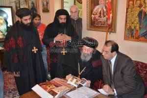 كان في استقبال المحافظ، ومرافقيه نيافة الانبا بيشوى، مطران دمياط وكفر الشيخ والبراري ورئيس الدير، والقمص ديسقورس شحاته، وكيل الدير.