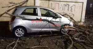 أنقذت العناية الإلهية مستقلى سيارة ملاكي ، وذلك لسقوط شجرة على السيارة بعد نزولهم منها بدقيقتين بمنطقة توريل بمدينة المنصورة ، أثناء وقوفها فى الشارع مما أدي لقطع الأسلاك الكهربائية، وانقطاع التيار الكهربائي بالمنطقة.