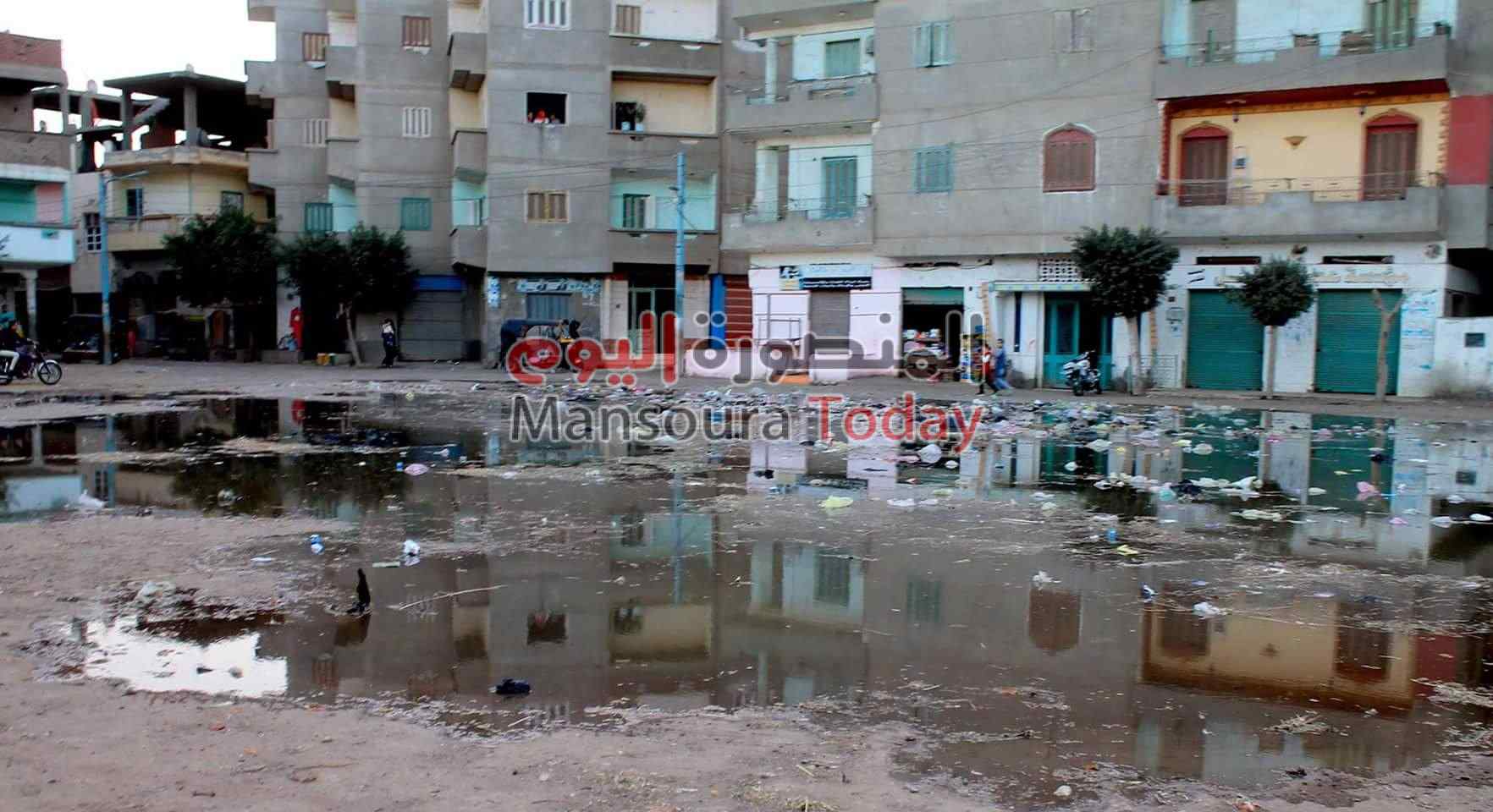 بالصور.. مياه الصرف الصحي تحاصر المنازل بقرية كفر الصلاحات ببني عبيد والأهالي “بيوتنا هتقع “