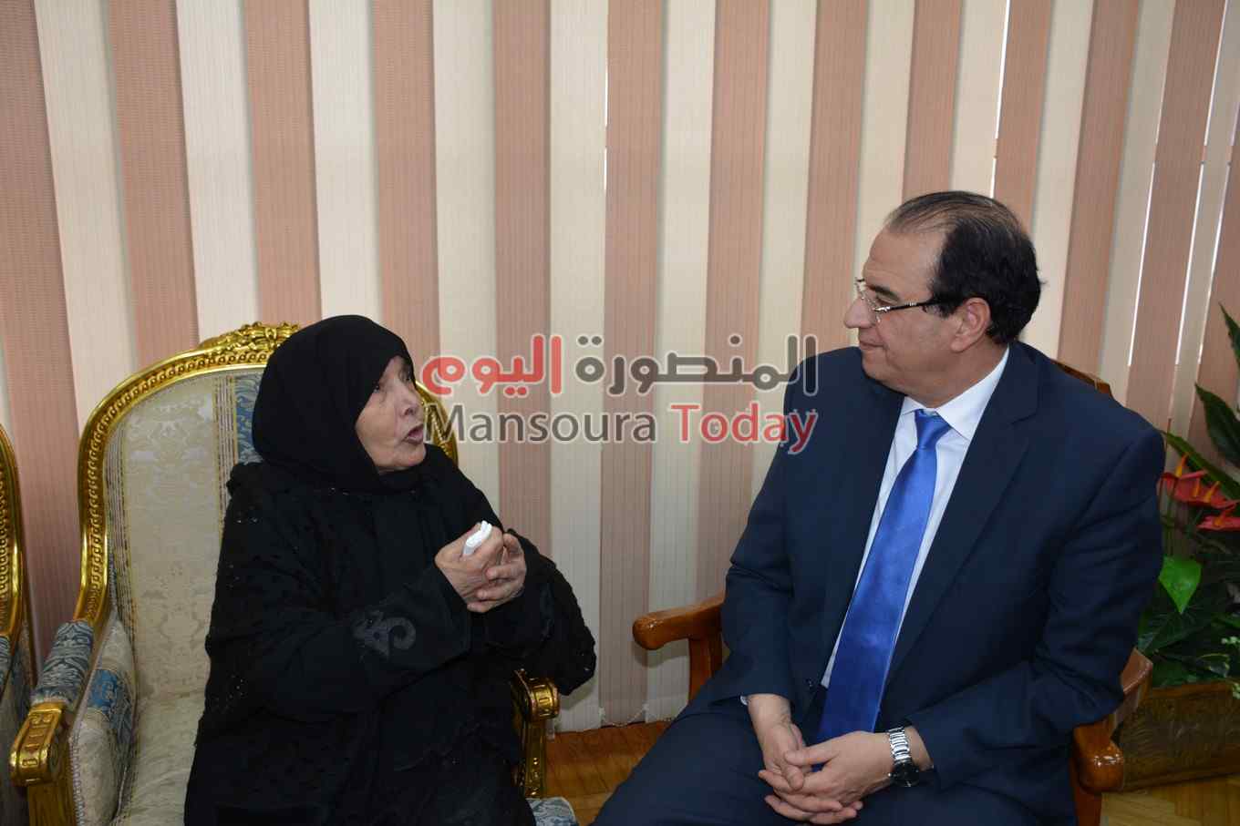 بالصور.. محافظ الدقهلية يلتقى متبرعة بمساحة 7 قراريط تملكهم لإقامة مستشفى للسرطان عليها