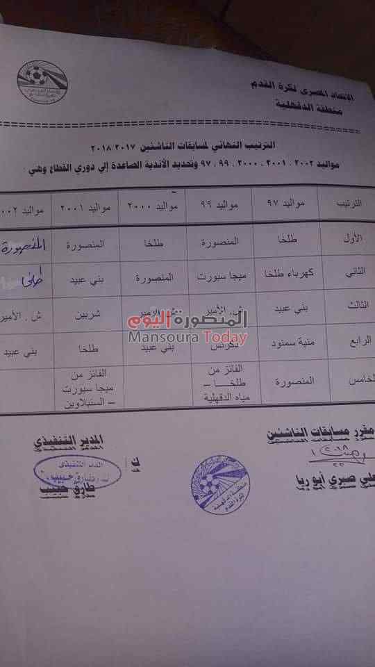 منطقه الدقهليه لكره القدم تعلن ترتيب فرق الناشئين المشاركه بدوري القطاعات