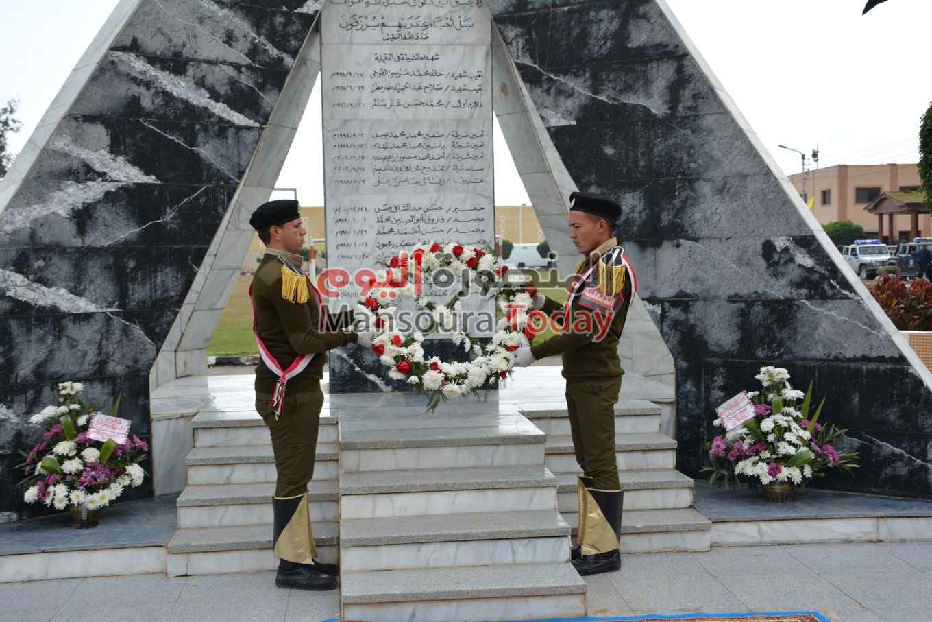 بالصور.. وضع إكليل الزهور على النصب التذكاري بالمنصورة بمناسبة عيد الشرطة الـ 66