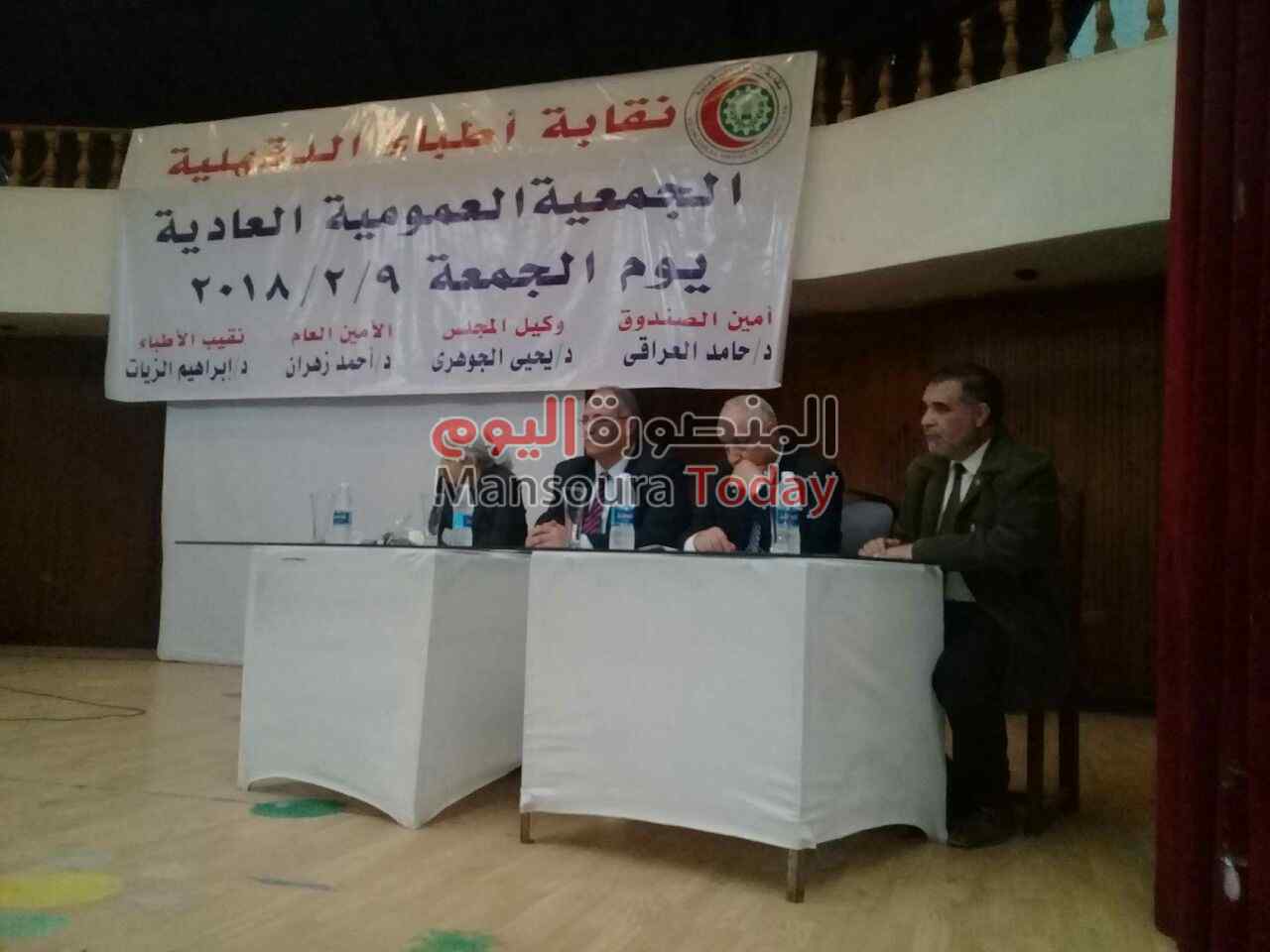 انعقدت صباح اليوم الجمعه بنادي الاطباء بطلخا الجمعية العمومية العادية لاطباء الدقهلية بحضور كلا من الدكتوره / مني مينا من النقابة العامة الأطباء مصر ، و الدكتور / إبراهيم الزيات نقيب أطباء الدقهلية و الدكتور / يحيي الجوهري وكيل نقابة الأطباء بالدقهلية ، الدكتور / حسن أبوالعينين