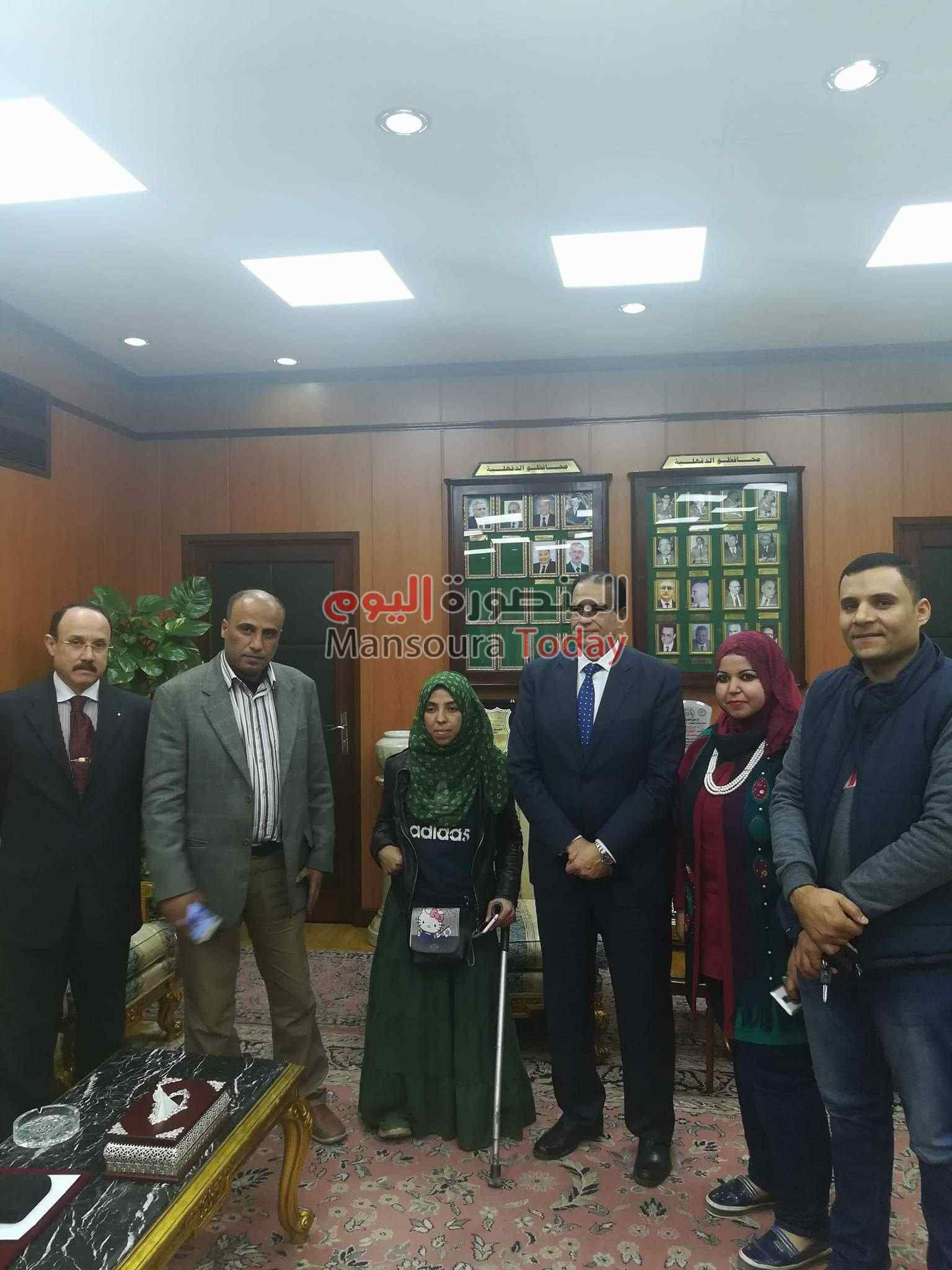 وقال المحافظ، أنت نموذج مشرف ليس للدقهلية فقط بل لمصر كلها ونموذج يجب تصديره للشباب لكي يعلمون انه لا يأس مع الحياة ولا حياة مع اليأس، مشيراً اليها انت قدوة للمجتمع كله وطاقة امل وطاقة نور لنا جميعاً ويجب ان يكون لدينا قدر كبير من الارادة التي بداخلك واحيي فيكي قوة العزيمة والتحدي.