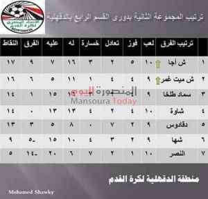 نتائج مباريات المجموعة الثالثة وترتيب المجموعة الثانية بدورى القسم الرابع بمنطقة الدقهلية