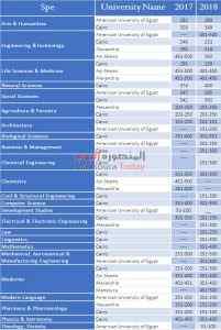 و أشار التقرير إلى تقدم ترتيب 5 جامعات مصرية في 24 من التخصصات العلمية والأدبية المختلفة على مستوى العالم ، وهى جامعات القاهرة والإسكندرية و عين شمس والمنصورة والجامعة الأمريكية بالقاهرةAUC.