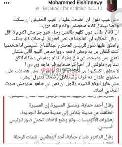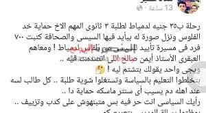 كما أعلن أحد محمد ضياء يعمل بسنتر الطلبة انه تعدى بالضرب بالشوم لكى يسكت وانه كتب على موقع التواصل الاجتماعى انه يرفض المتاجرة بطلبة الثانوية فى السياسه وان الرئيس السيسى برئ من تلك الأفعال الغير مسؤلة واكد محمد ضياء انه تعرض للضرب بالشوم من اجل السكوت وانه توجهة للنيابة لعمل محضر بالواقعه.