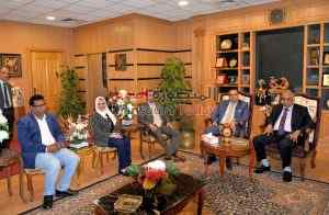 ورحب “القناوى”خلال اللقاء بزيارة المستشار الثقافى والتى تعد أول زيارة لجامعة مصرية بعد توليه مسئولية المستشار الثقافى بالسفارة اليمنية مشيرا الى عمق الروبط والعلاقات بين الشعبين المصرى واليمنى ، وأن الجامعة تولى اهتماما بالطلاب اليمنيين لتذليل الصعوبات أثناء دراستهم بالجامعة فى مرحلة البكالوريوس والدراسات العليا .