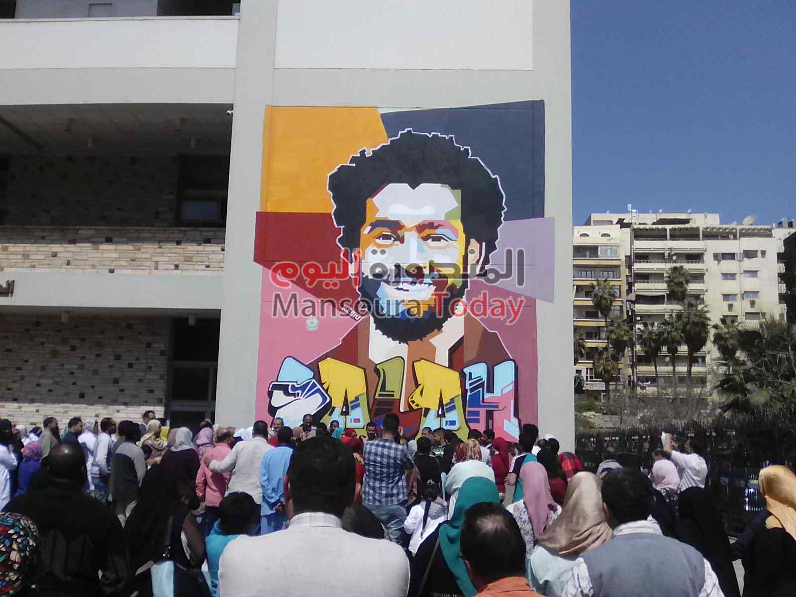 أزيح الستار اليوم عن جدارية بمستشفى الأطفال بجامعة المنصورة والتى تعبر عن مناشدة الأطفال المرضى بانتظارهم زيارة الفرعون المصرى لاعب المنتخب الوطنى ولاعب نادى ليفربول الانجليزى لاسعادهم بزيارتهم بمستشفى الأطفال الجدارية التى قام برسمها 60 طفل وطفلة من المرضى بوحدة الغسيل الكلوى بمستشفى الأطفال الجامعى والتى تجسد رسم جرافيتى للاعب المصرى محمد صلاح ودعوة الأطفال للاعب عن طريق الرسم الجرافيتى برسم صورته وكتابة عبارة we wait you Salah ” صلاح نحن ننتظرك ” .