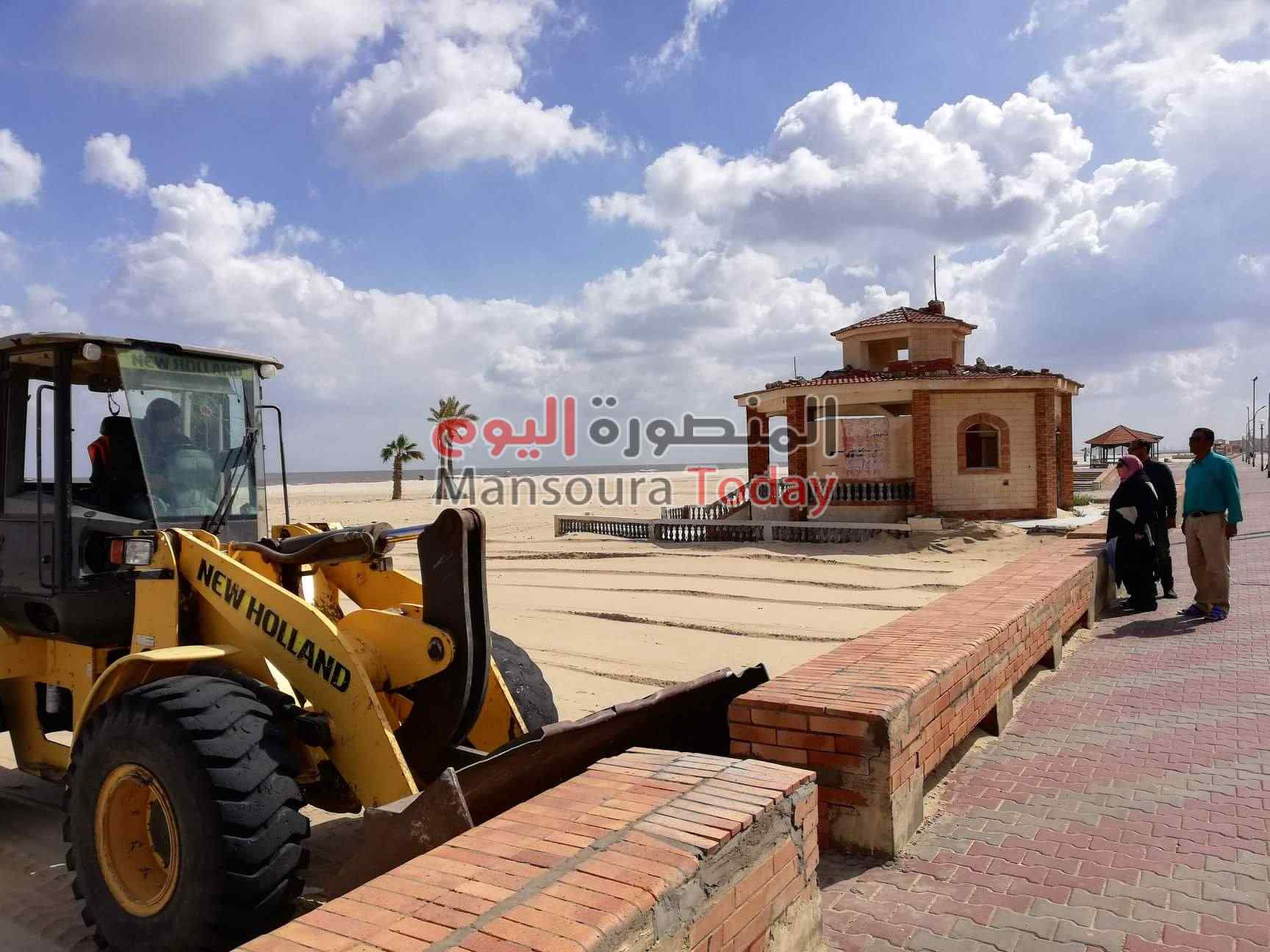 حيث قامت المهندسة / سحر لطفي رئيس مدينة جمصة بمتابعة اعمال رفع الرمال و تنظيف مشاية الكورنيش وتسوية رمال الشاطئ و دهان مدخل ادارة الشاطئ تحت اشراف السيد / عابد غنيم مدير الشاطي والجهاز المعاون .