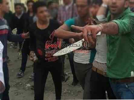 نزيف بالمخ وكدمات متفرقة بالجسم ( ولا يمكن استجوابه ، وتم تحويله إلى مستشفى المنصورة الدولى ، ونجله عاطف صبرى شكرى 31 سنة ، مصاباً بجروح قطعية بفروة الرأس واليدين وقطع بأوتاره