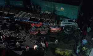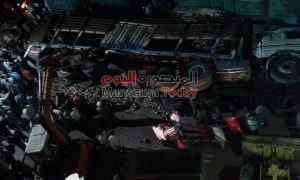 شهد طريق “الجمالية – صان الحجر” حادث مروع بعد انقلاب سيارة نقل محملة بنجر علي سيارة ربع نقل محملة خلايا عسل نحل .
