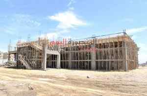 المبنى على مساحة 3600 متر مربع وقد تم تنفيذ كامل الأساسات وأعمدة الدور الأرضى بالكامل