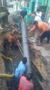 وأضاف المحافظ، في تصريحات صحفيه له اليوم، أنه على الفور بدأ العمل بالحفر على خطوط المياه والصرف الصحي بالمنطقة وبالكشف وجد كسر بالماسورة العمومية التابعة لخط طرد محطة الصرف الصحي لشارع الجلاء نتيجة لزيادة الضغط ويبلغ طولها 4م من نوع اسبستوس انتهي عمرها الافتراضي حيث يبلغ اكثر من 15 عاما واستمر العمل في احلال وتجديد الخط المذكور من الحاديه عشرة مساء امس الثلاثاء حتى السادسة صباح اليوم الأربعاء.