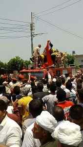 وخرجت الجنازة من الجامع الكبير بالقرية عقب صلاة الظهر لتوديعه إلي مثواه الأخير ، وسط جنارة عسكرية مهيبة .