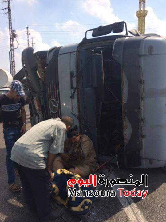 اصيب شخص علي طريق “المنصورة – بنها”، اثر انقلاب سيارة نقل كبير ” تريلا” تحمل فنطاس فارغ لتحميل المازوت، تحمل لوحات معدنية رقم “د و ب ٦٩٧٥”،