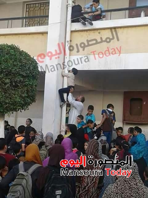 و صرح أحد أولياء الأمور أنه من الغريب أن يقوم الأهالى بهذا التصرف هل نساعد أولادنا على التعليم أم نساعدهم على تسلق المواسير ؟