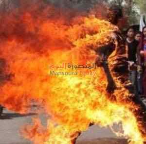 أقدم زوج علي إشعال النار في جسده بعد قتله لزوجته في ميت غمر ، هربا من الملاحقات الأمنية .