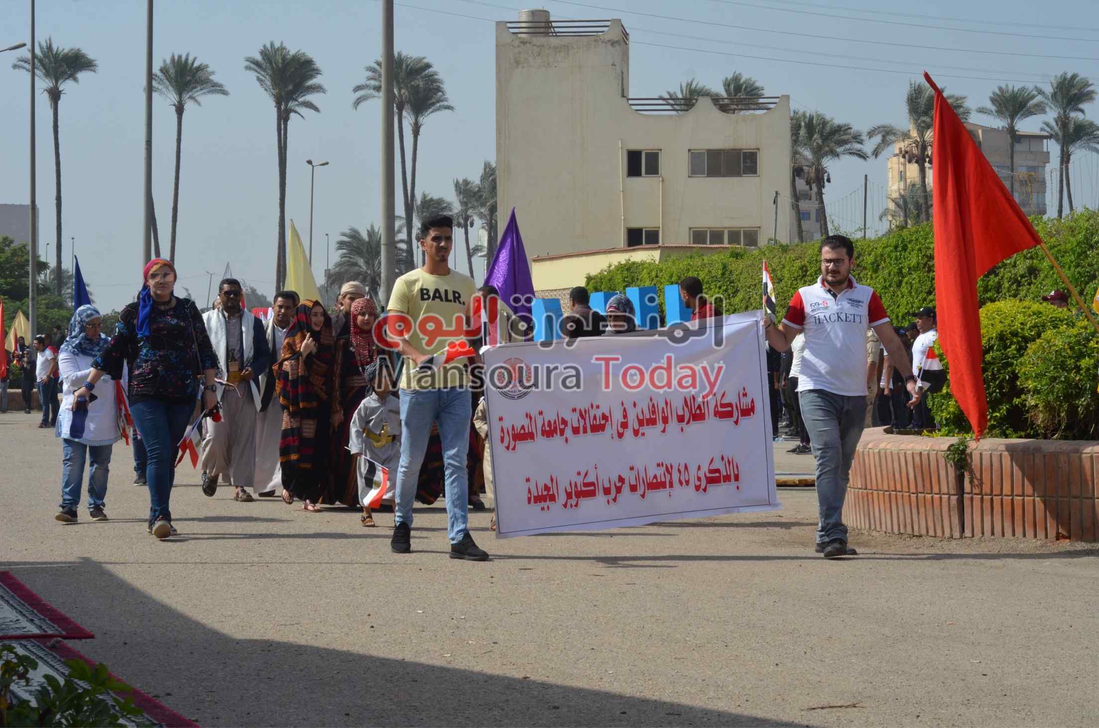 نظمت إدارة رعاية الطلاب بجامعة المنصورة كرنفال طلاب الجامعة بمناسبة انتصارات اكتوبر ، فى إطار الاحتفالات بالذكرى 45 لانتصارات حرب أكتوبر 1973 م