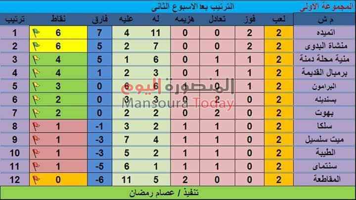 انتهت اليوم مباريات الجوله الثانيه من المجموعه الاولي بدورى مراكز الشباب فى نسخته السادسه ، وشهدت المباريات هذا الاسبوع غزارة تهديفيه حيث تم احراز ٣٠ هدف خلال هذه الجولة ، كما شهد الجدول مؤشرات اوليه للمنافسه حيث ينتزع ابناء اتميدة الصدارة بفارق الاهداف عن فريق منشأه البدوى بالعلامه الكامله ٦ نقاط وياتى من الخلف كلا من منيه محله الدمنه و برمبال القديمه برصيد ٤ نقاط ، بينما يتزيل الترتيب فريق المقاطعه بصفر من النقاط. دعونا نتعرف علي نتائج هذه الجوله :- – البرامون & المقاطعه (٥-٣) – اتميدة & ميت سلسيل (٥-٢) – بسنديله & بهوت (١-١) – سلكا & برمبال القديمه (١-٢) – منيه محله الدمنه & سنتماى (٥-٠) – منشأه البدوى & الطيبه (٤-١) لا نتسرع بالحكم فالجميع بإمكانه ترتيب الاوراق والمنافسه من جديد علي الصدارة .