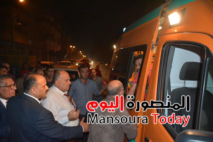 وقد كلف مدير إدارة المرور برفع السيارات من حرم الطريق لتسهيل حركة المرور وفى تلك الاثناء سارعت عربات الاسعاف إلى موقع الحادث حيث قام محافظ الدقهلية بالاطمئنان على المصابين ووجه بتوفير كافة أوجه الرعاية لهم ونقلهم إلى المستشفى الدولي لحين اتمام علاجهم.