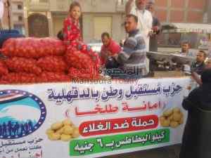 قام حزب مستقبل وطن أمانة الدقهلية برئاسة النائب محمد المرشدى ، بتحرك سريع لاحتواء أزمة البطاطس التي أحدثت أزمة كبيرة في الشارع المصري .