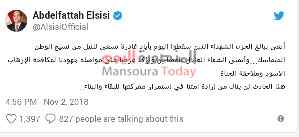 كما نعى السيسي ضحايا الهجوم قائلا في تغريدة على حسابه الرسمي على تويتر “أنعي ببالغ الحزن الشهداء الذين سقطوا اليوم بأيادٍ غادرة تسعى للنيل من نسيج الوطن المتماسك”.