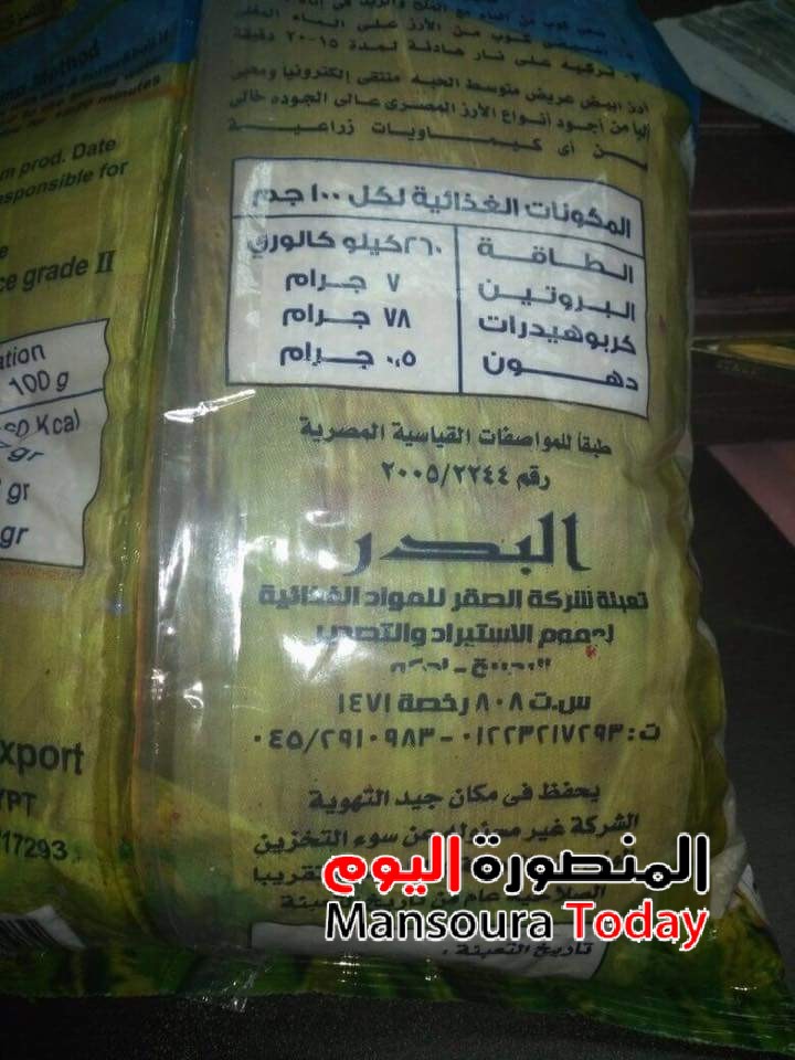وأسفرت الحملة عن ضبط 8320 كجم أرز معبأ باحد محلات الجملة الشهيرة بمنطقة غرب المنصورة.