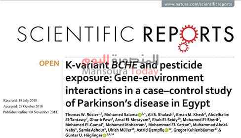 حصلت جامعة المنصورة خلال هذا العام علي المراكز الاولي في مجلة النيتشر العلمية عدة مرات في المجالات العلمية المختلفة ما بين حفريات وجيولوجيا وفيزياء وعلوم مواد حيوية وعلوم طبية واكتشافات جينية لأمراض مستعصية. واستطاع فريق مصري-ألماني الكشف عن جين جديد يزيد من فرص الإصابة بالشلل الرعاش في المرضى المصريين. ويأتي على رأس الفريق البحثي المصري الدكتور محمد سلامة مدير مركز البحوث الطبية التجريبية بجامعة المنصورة والأستاذ الدكتور عبد الحليم الطنطاوي أستاذ طب الأعصاب بكلية الطب جامعة المنصورة. ويعد هذا البحث أحد مخرجات مشروع ممول من الهيئة الألمانية للتبادل العلمي DAAD ، حيث نجح فريق العلماء المصريين والالمان وباستخدام تقنيات الجيل الجديد من التحليل الجيني في عزل جين يعتقد انه يزيد من فرصة الإصابة بالمرض حال التعرض للمبيدات الحشرية والجين المشار اليه هو المسئول عن تخلص الجسم من هذه المواد السامة. يذكر ان التعاون قد بدأ من 2012م بين جامعة المنصورة وجامعة ميونيخ التقنية وتوالى انضمام باحثين مشاركين في المشروع من الجامعات المصرية الاخرى مثل عين شمس وأسيوط وسوهاج وجامعات ألمانية مثل جامعة كييل. وذكر أ.د. أشرف سويلم نائب رئيس الجامعة للدراسات العليا والبحوث أن الباحثين بجامعة المنصورة على درجة عالية من الكفاءة والدقة العلمية التي تؤهلهم للتميز العلمي بمجرد توفر الشراكات الجادة مع شركاء مثل الجامعات الألمانية وهيئة DAAD. وتحرص الجامعة على التواصل مع أبنائها من خلال مكتب العلاقات الدولية لإظهار النجاحات وتذليل العقبات. وقدم أ.د. أشرف عبد الباسط القائم بعمل رئيس الجامعة التهنئة للفريق البحثي متمنيا دوام الرقي والتميز لجميع الباحثين والعلماء بجامعة المنصورة، مؤكدا على ضرورة بناء الشراكات العلمية مع المؤسسات الدولية المعتبرة للارتقاء بمستوى الجامعة علميا وتعليميا.