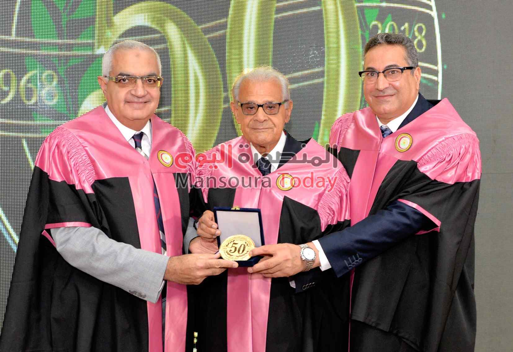 نظمت كلية الطب بجامعة المنصورة ، اليوم ، بمدرج الدكتور محمد حافظ بالكلية حفلا لتكريم الدفعة الأولى التى تخرجت فيها عام ١٩٦٨ م فى اطار احتفالات الكلية باليوبيل الذهبى لمرور 50 عاما على تخرج أول دفعة .