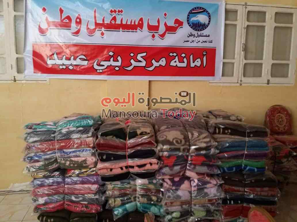 مستقبل وطن يوزع ٢٥٠بطانية على الغير قادرين بمركز ومدينة بنى عبيد