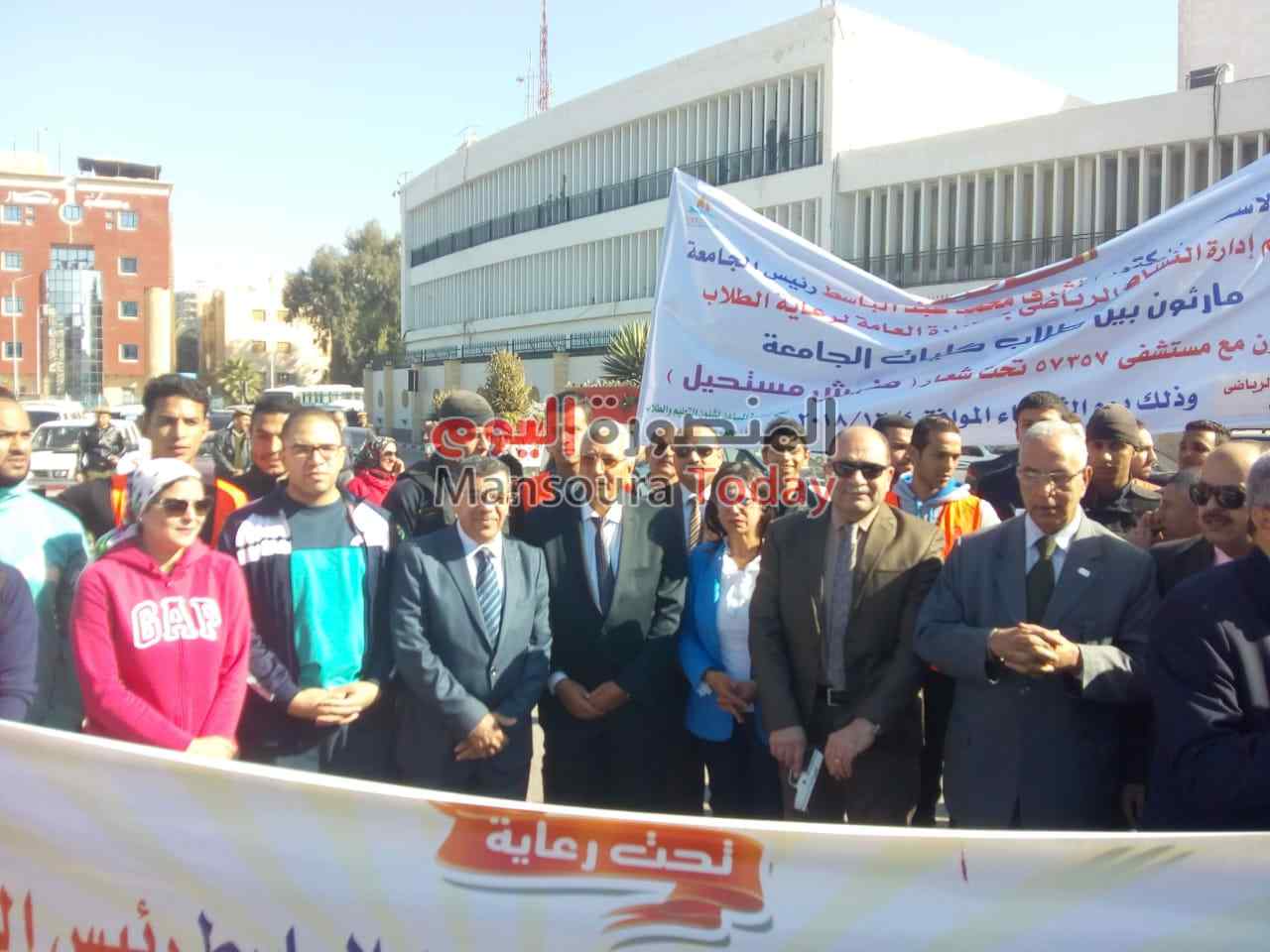أعطي الدكتور كمال شاروبيم محافظ الدقهلية ، صباح اليوم ، إشارة البدء لماراثون شباب جامعة المنصورة ومستشفى 57357 الذي يهدف إلي دعم مستشفى 57357 لسرطان الأطفال .