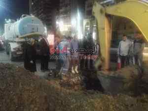 وتبين كسر خط 12بوصة اسبستوس بمدخل منطقة الدراسات بشرق المنصورة وجاري العمل على إصلاحه .