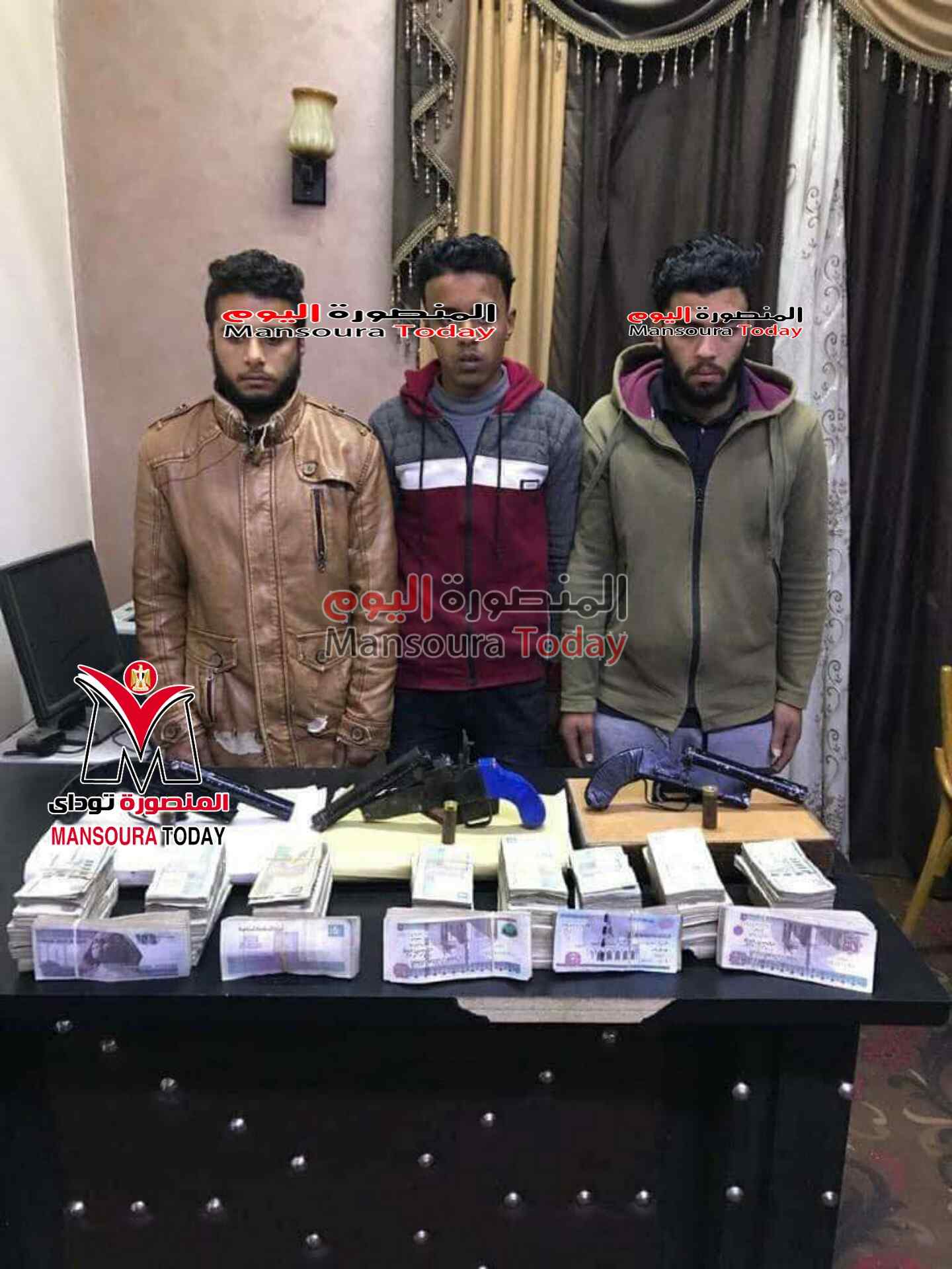 تم ضبط المتهمين وبحوزة الأول المبلغ المالي المبلغ بسرقته وقيمتة 157 ألف جنيه وفرد خرطوش ، وطلقة من ذات الغيار ،والثاني ضبط وبحوزته فرد خرطوش محلي الصنع وكلقة من ذات العيار، والثالث وبحوزته فرد خرطوش محلي الصنع وطلقة من ذات العيار ، وبمواجهتهم اعترفوا في محضر الشرطة بإرتكاب الواقعة .