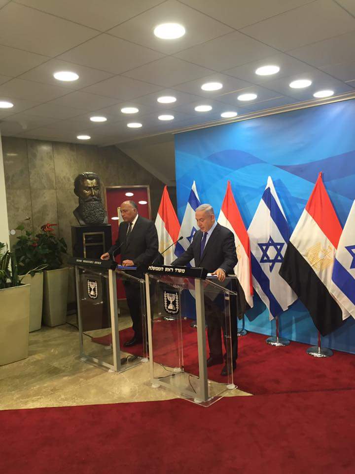 “يسرني أن أحيطكم علما أن وزير الخارجية المصري سامح شكري سيصل إسرائيل اليوم وسألتقي معه بعد ظهر اليوم ومرة أخرى هذا المساء. كانت آخر زيارة لوزير خارجية مصري إلى إسرائيل في عام 2007, قبل عقد تقريبا.